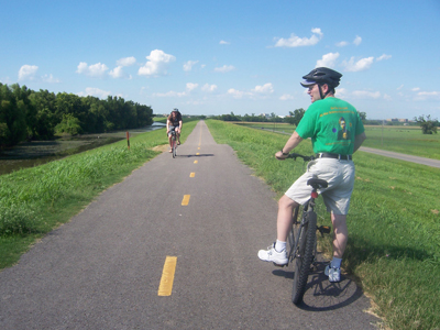 The levee trail runs for 4.3 miles starting from downtown. It has been suggested that the levee trail could be extended all the way to the trails in New Orleans.